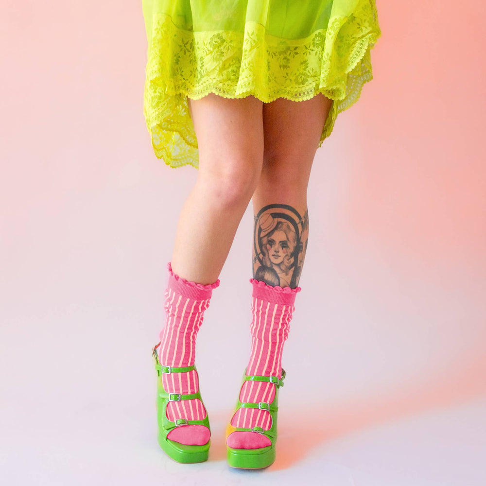 Sunshine Studios - Micro Stripe Crew Socks | Pink/Red